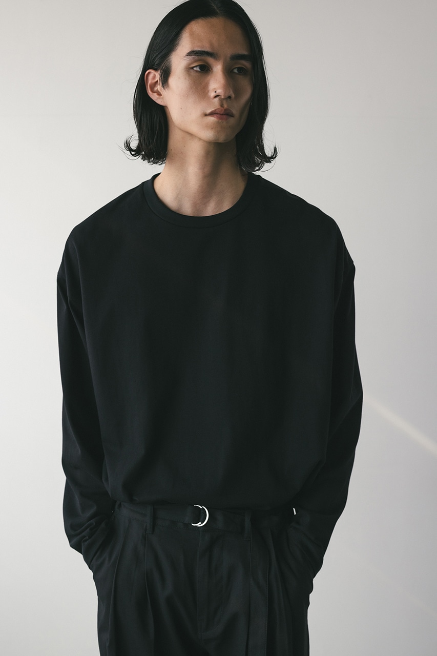 32番双糸天竺を使用したシンプルながら高級感のある目面が特徴のロンT。さらりとした独特な肌触りとシルクのような落ち感が叶うシリコンバイオ加工を採用。ストレスを感じさせない最高の着心地と、大人っぽい表情が魅力です。ゆとりのあるサイズ感でラウンドヘムに前後差を付けることで他のアイテムとのレイヤードを楽しめます。ストレッチあり、透け感なし。メンズの取扱店舗はショップリストをご確認ください。