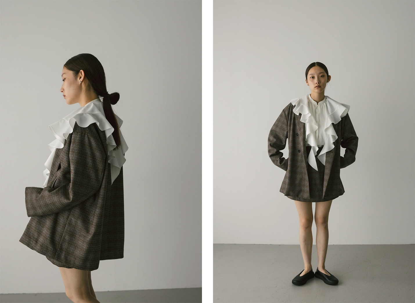 こだわり抜いたチェック柄のセットアップをご用意しました。ハンサムなボクシーラインに、ドロップショルダーとゆったりとしたアームが抜け感を演出する「チェックテーラードジャケット」と、サイドパネルを入れず、丸みのあるフォルムに仕上げた「チェックコクーンミニスカートパンツ」を展開いたします。