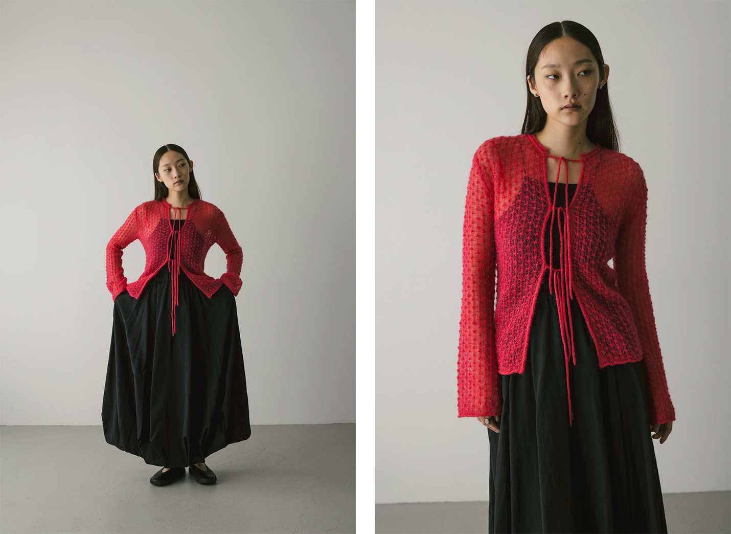 人気アイテムの「2WAYモヘアミックスリボンニット」より、ルミネエスト新宿店限定カラーで発色の鮮やかなピンクをご用意しました。モヘアの立体感が際立つ1枚で、前後2WAYで雰囲気を変えて着用いただけます。繊細な透け感が上品で目を惹くアイテムです。