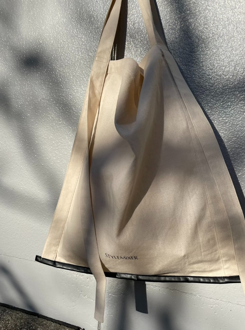 人気のリネンシリーズと合わせて、レザーのパイピングを施したリネントートバッグをご用意しました。名古屋MOZOワンダーシティのオープン限定ノベルティです。