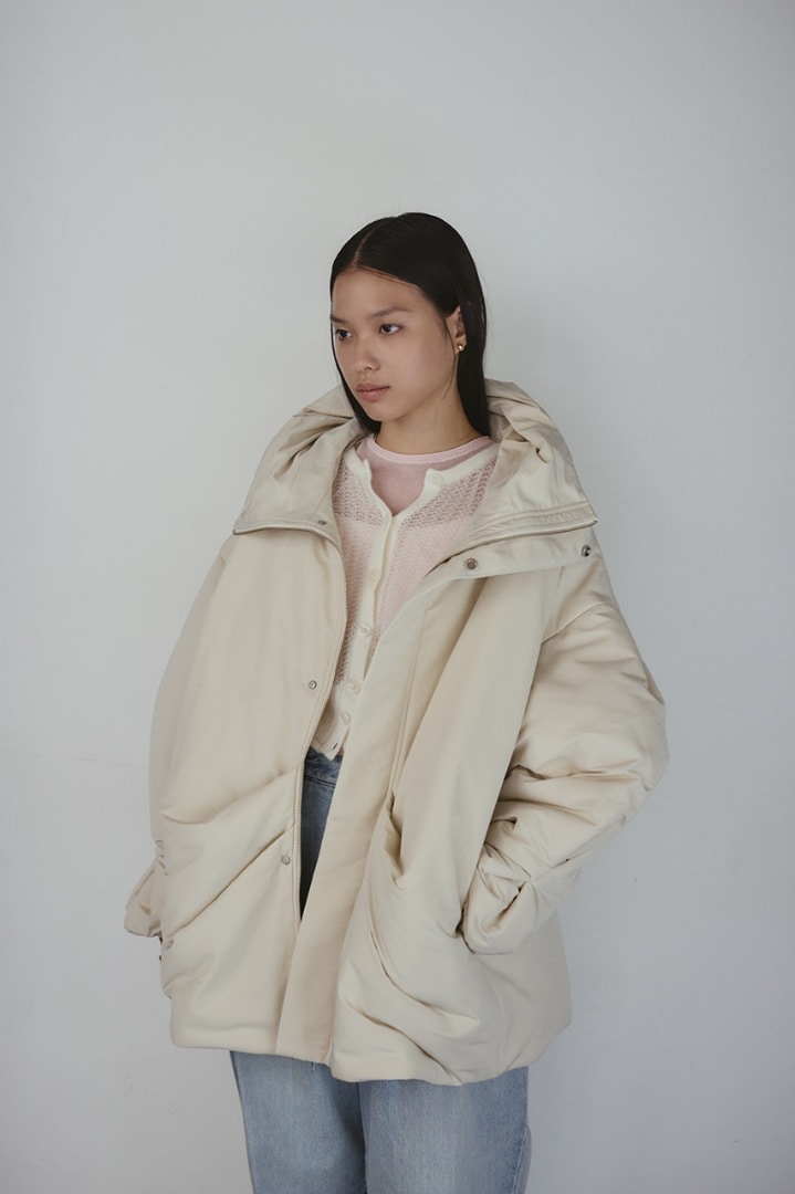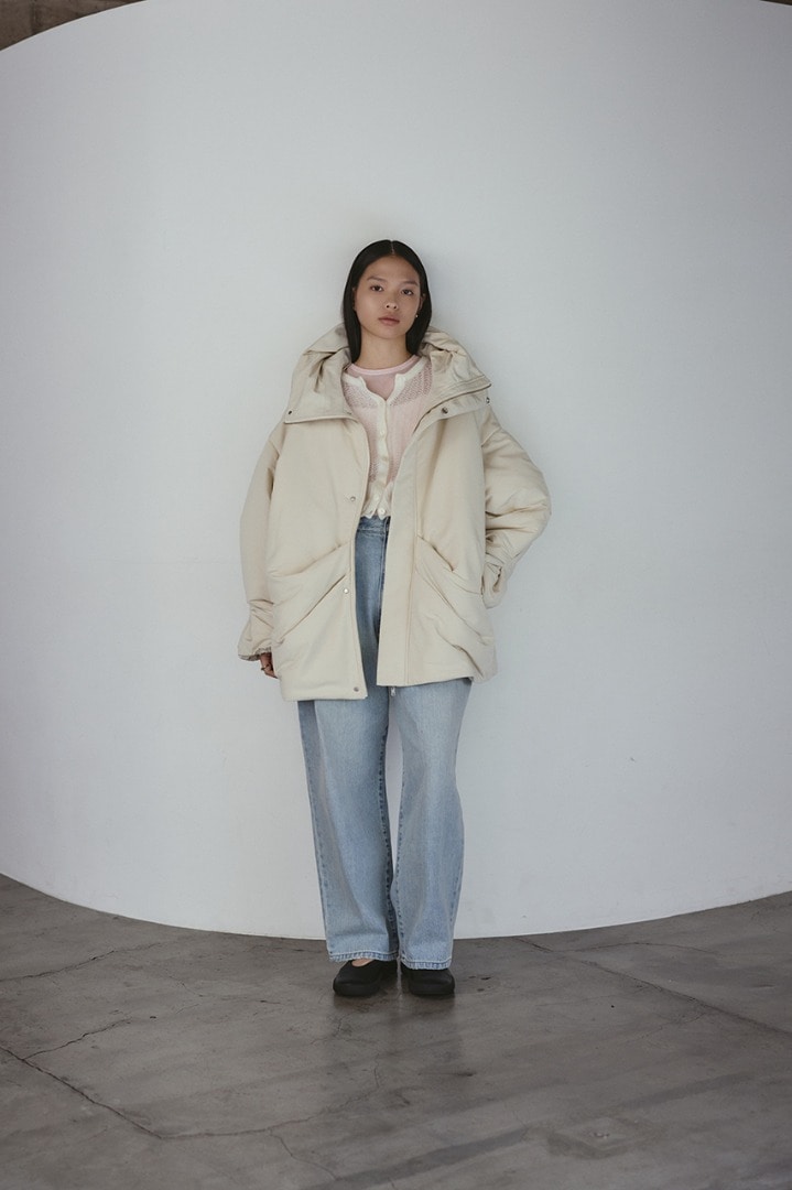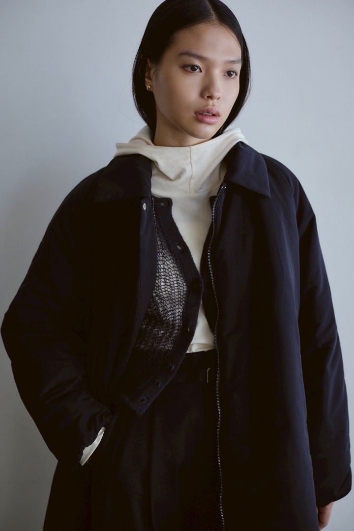 • 防寒性とデザイン性を兼ね揃えた小ぶりのフードがポイント。