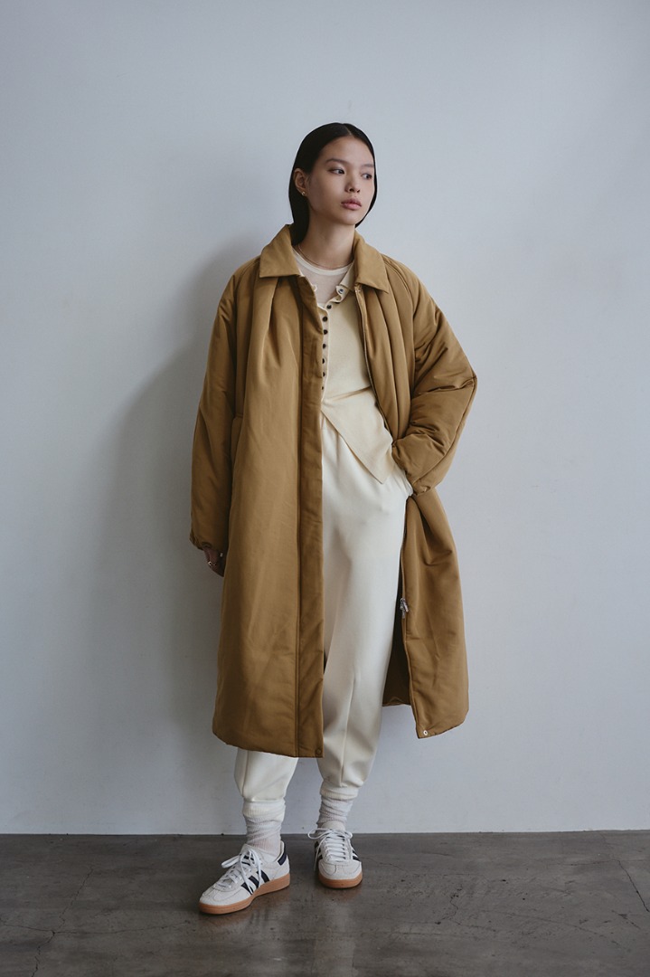 こなれ感のあるサイジングと飽きのこないステンカラーデザインがポイント。