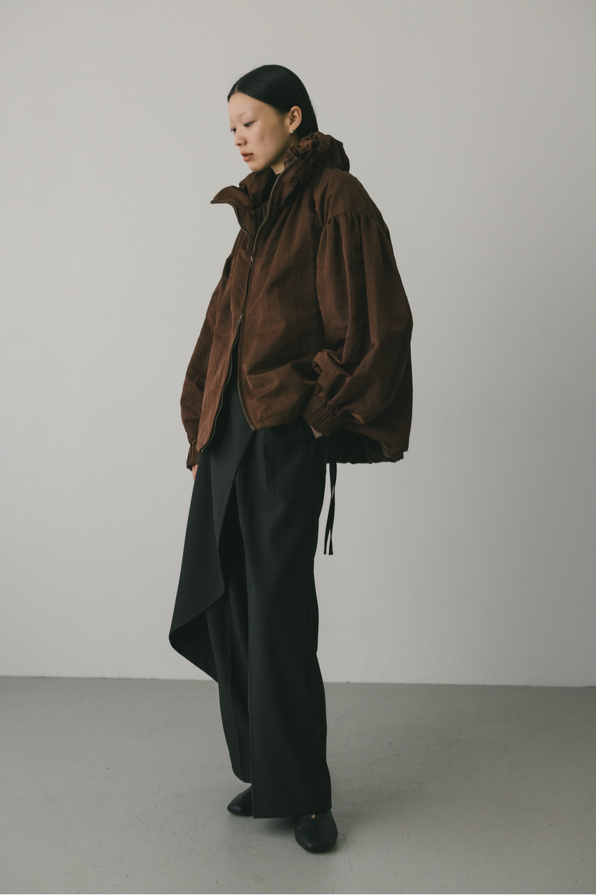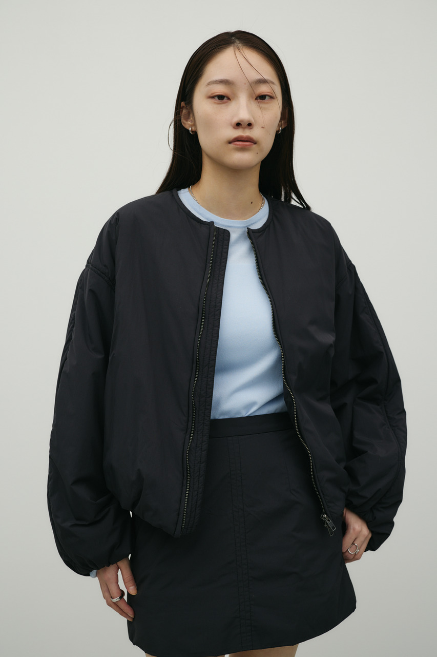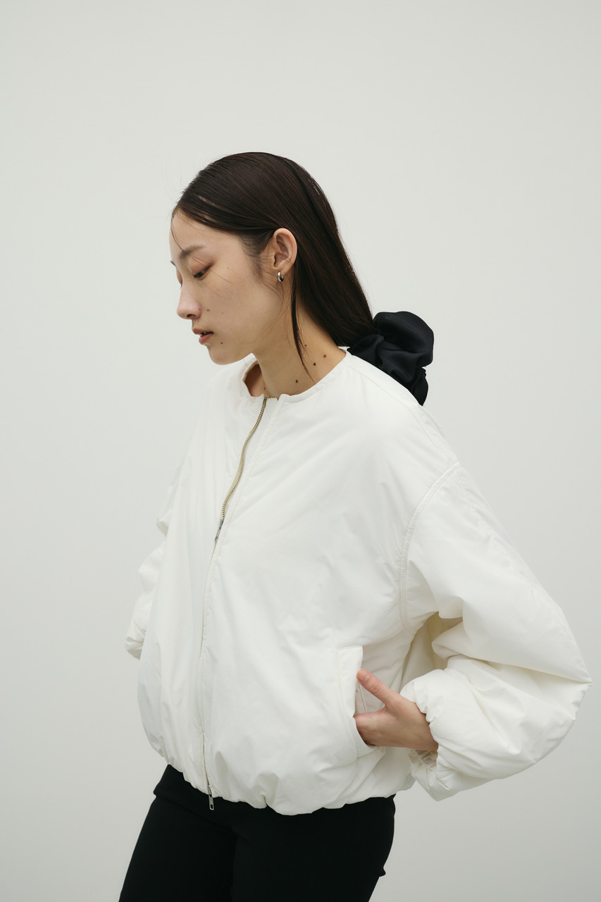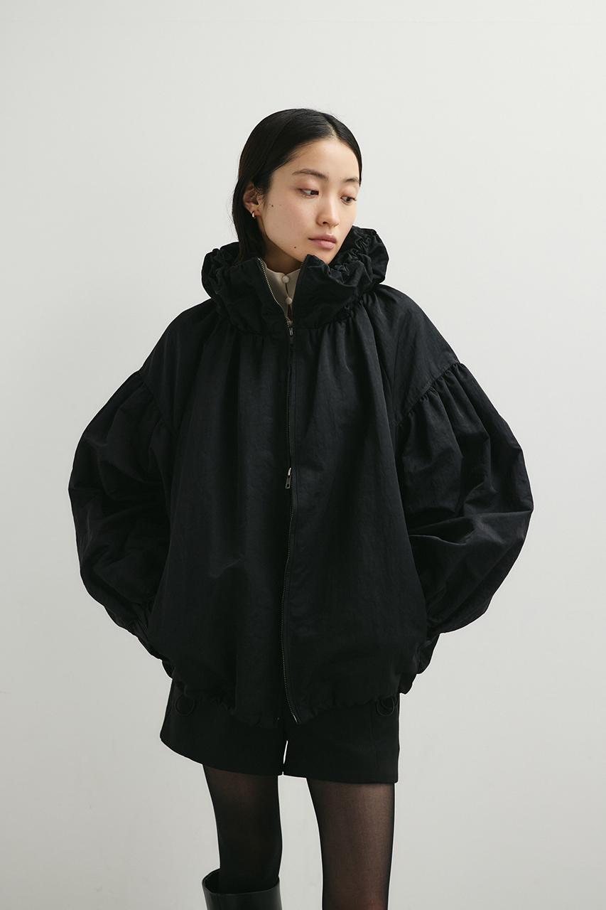 • 襟にギャザーをたっぷりと寄せニュアンスをもたせた中綿入りブルゾン。